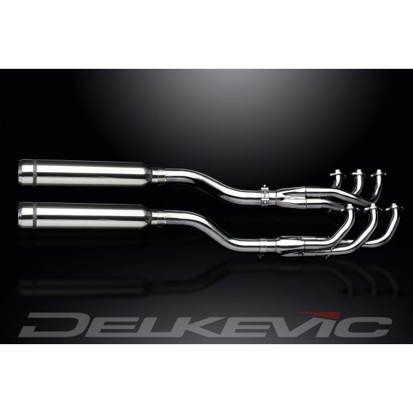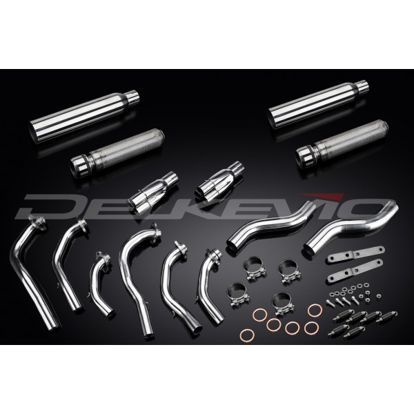 • This set includes - Delkevic down pipes, custom silencer with a removable baffle, clamp, bracket, and fixings.