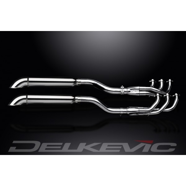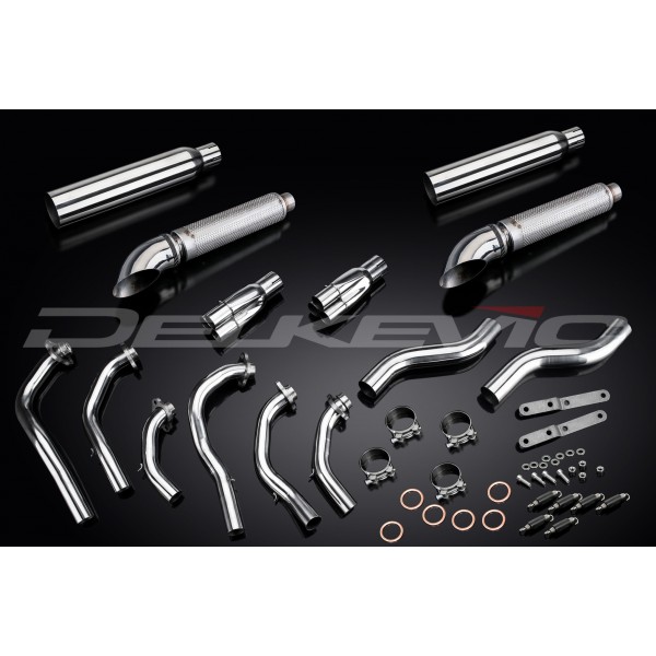 • This set includes - Delkevic down pipes, custom silencer with a removable baffle, clamp, bracket, and fixings.
