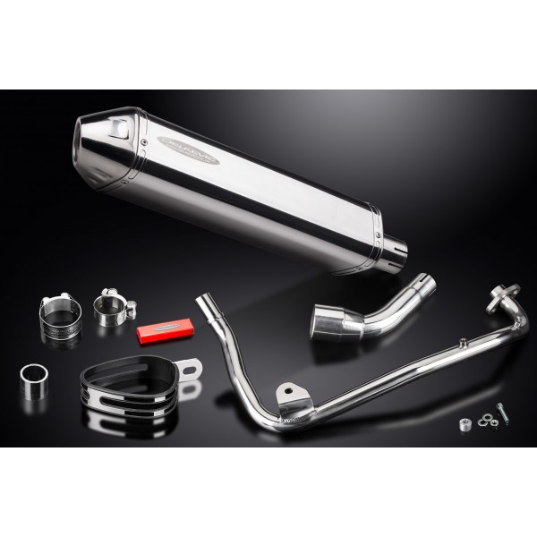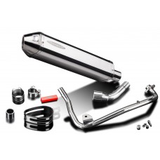 • This set includes - Delkevic down pipes, link pipe, silencer with removable baffle, strap, gasket, and clamps.