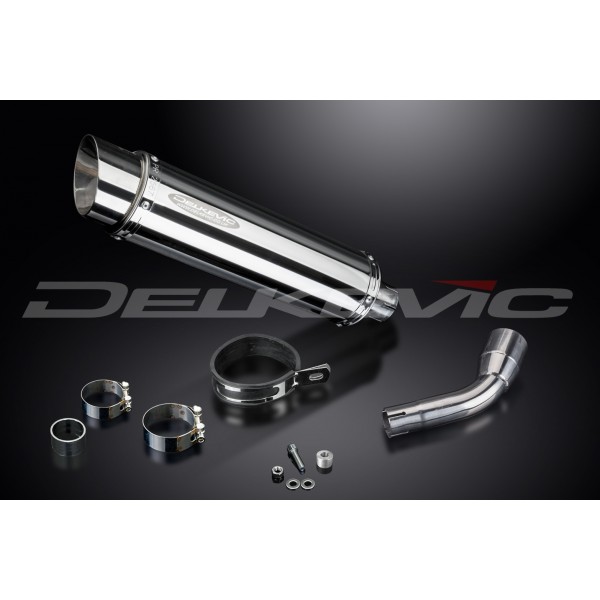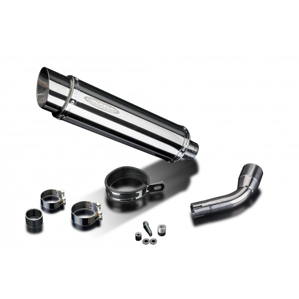 • This set includes - Delkevic silencer with a removable baffle, link pipe, strap, gasket, and clamps.