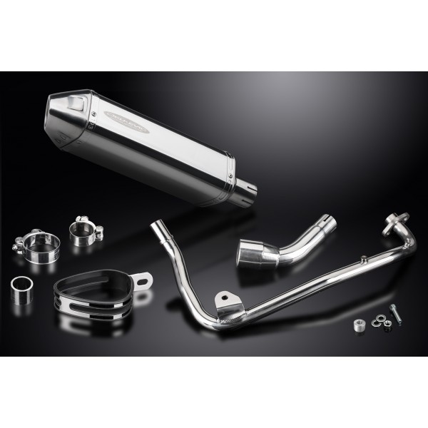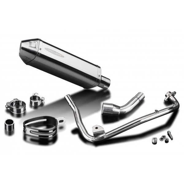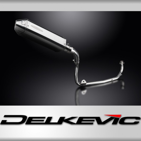 • This set includes - Delkevic down pipes, link pipe, silencer with removable baffle, strap, gasket, and clamps.