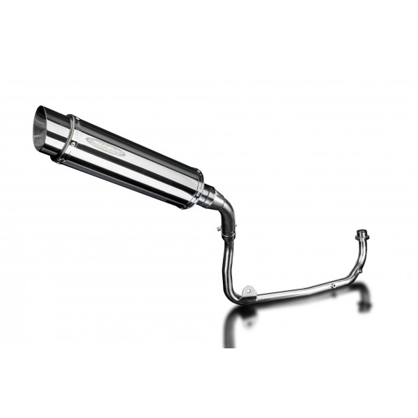 • This set includes - Delkevic down pipes, link pipe, silencer with removable baffle, strap, gasket, and clamps.