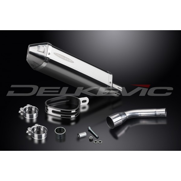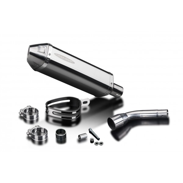- This set includes - Delkevic silencer with a removable baffle, link pipe, strap, gasket, and clamps.