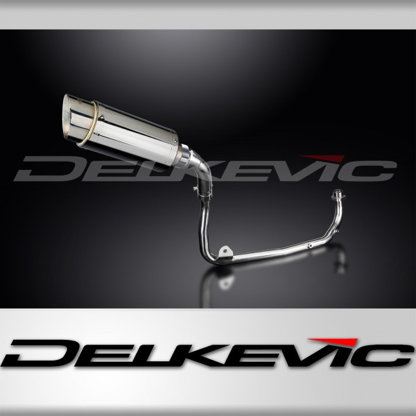 • This set includes - Delkevic down pipes, link pipe, silencer with removable baffle, strap, gasket, and clamps.