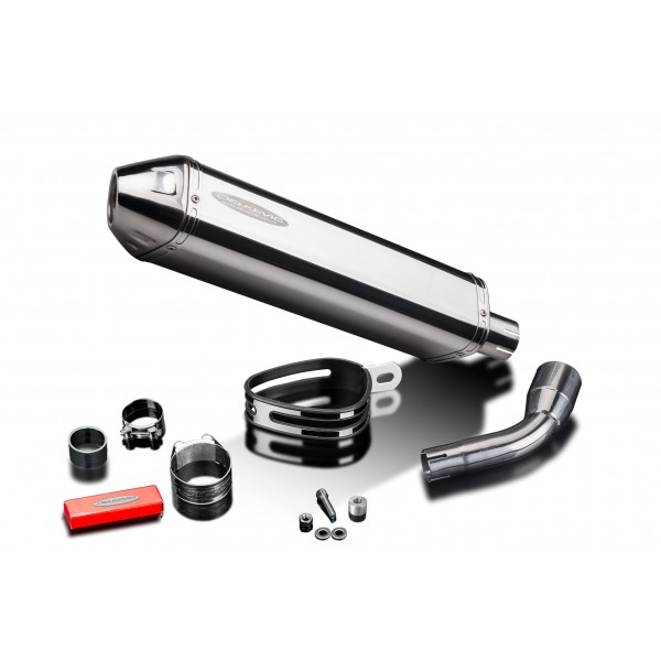 • This set includes - Delkevic silencer with a removable baffle, link pipe, strap, gasket, and clamps.