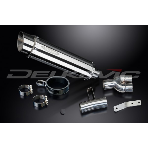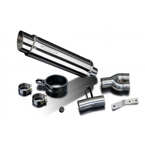 • This set includes - Delkevic silencer with a removable baffle, link pipe, strap, and clamps.