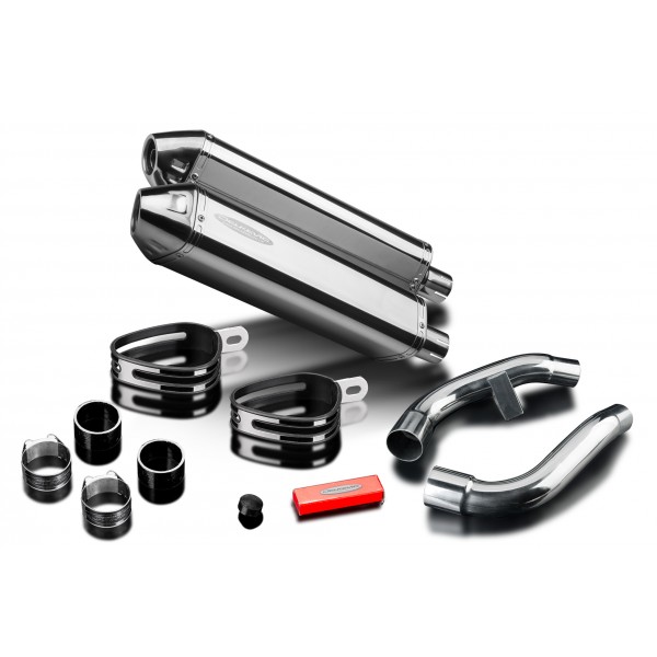 • This set includes - Delkevic silencers with removable baffles, link pipes, clamps, and straps.