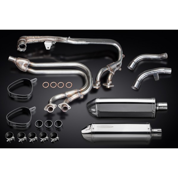 • This set includes - Delkevic down pipes, link pipes, silencers with a removable baffle, straps, clamps, and fixings.