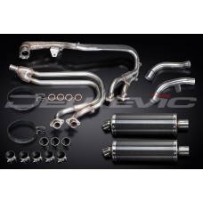 • This set includes - Delkevic down pipes, link pipes, silencers with a removable baffle, straps, clamps, and fixings.