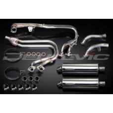 • This set includes - Delkevic down pipes, link pipes, silencers with a removable baffle, straps, clamps, and fixings.