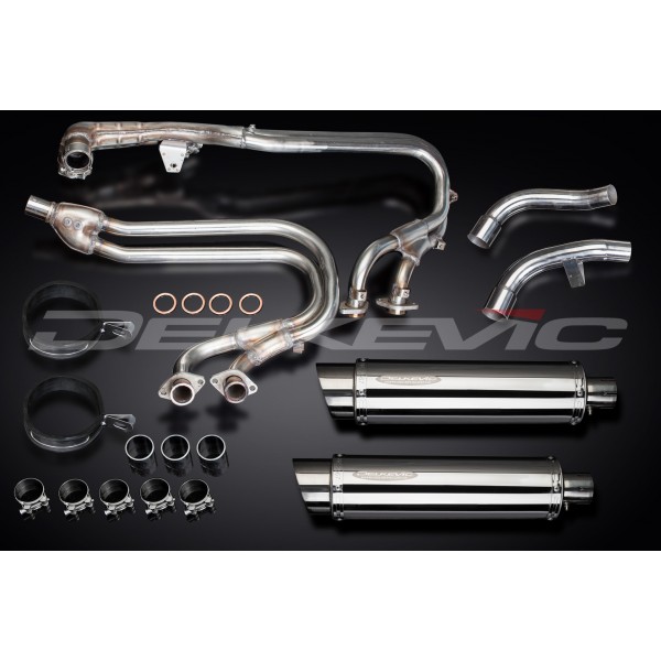 • This set includes - Delkevic down pipes, link pipes, silencers with a removable baffle, straps, clamps, and fixings.