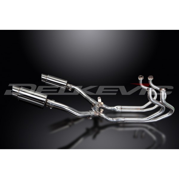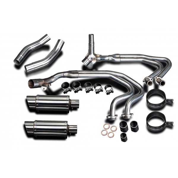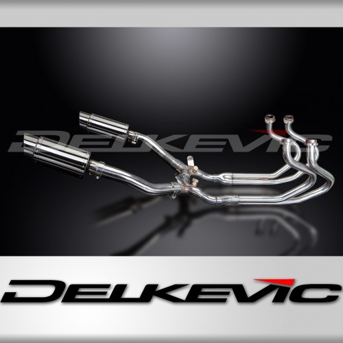 • This set includes - Delkevic down pipes, link pipes, silencers with removable baffles, straps, clamps, and gaskets.