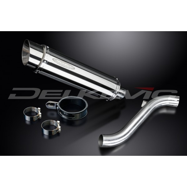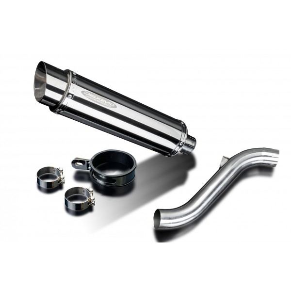 • This set includes - Delkevic silencer with a removable baffle, link pipe, strap, and clamps.