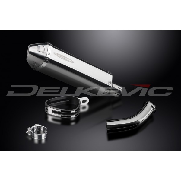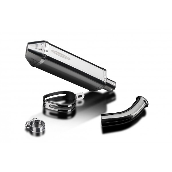 • This set includes - Delkevic silencer with a removable baffle, link pipe, strap, and clamp.
