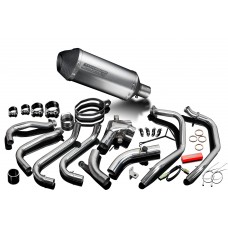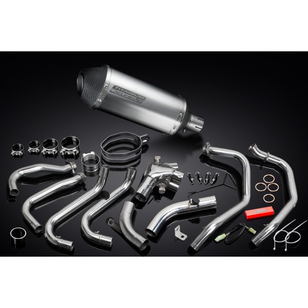 - This set includes - Delkevic down pipes, link pipe, silencer with a removable baffle, strap, clamps, gaskets, stand stop rubber, spring hooks, bracket, and wiring kit.