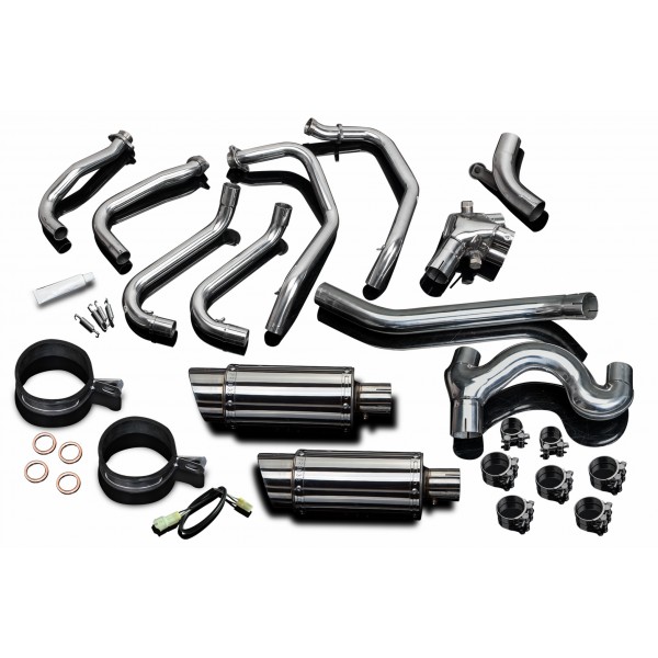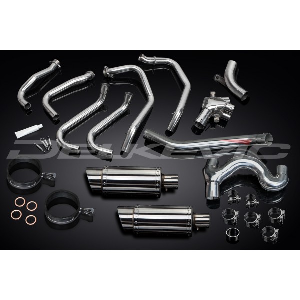 • This set includes - Delkevic down pipes, link pipes, silencers with removable baffles, straps, clamps, fixings, and gaskets.
