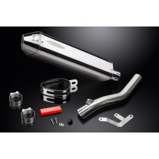 • This set includes - Delkevic silencer with a removable baffle, link pipe, strap, clamps, and additional bracket.