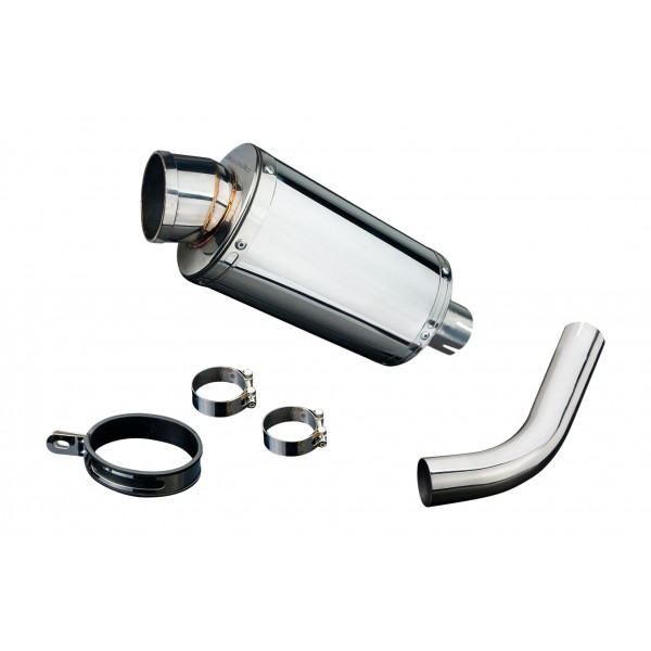 • This set includes - Delkevic silencer with a removable baffle, link pipe, strap, and clamps.