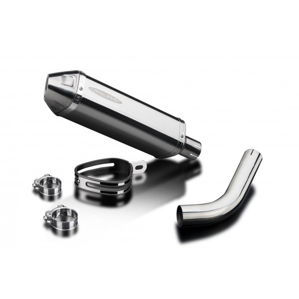 • This set includes - Delkevic silencer with a removable baffle, link pipe, strap, and clamps.