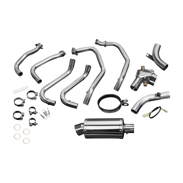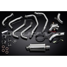 • This set includes - Delkevic down pipes, link pipe, silencer with a removable baffle, strap, clamps, gaskets, stand stop rubber, spring hooks, bracket, and wiring kit.
