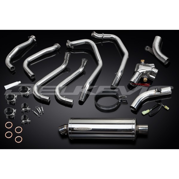 • This set includes - Delkevic down pipes, link pipe, silencer with a removable baffle, strap, clamps, gaskets, stand stop rubber, spring hooks, bracket, and wiring kit.