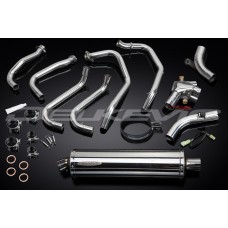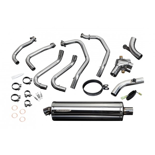 • This set includes - Delkevic down pipes, link pipe, silencer with a removable baffle, strap, clamps, gaskets, stand stop rubber, spring hooks, bracket, and wiring kit.