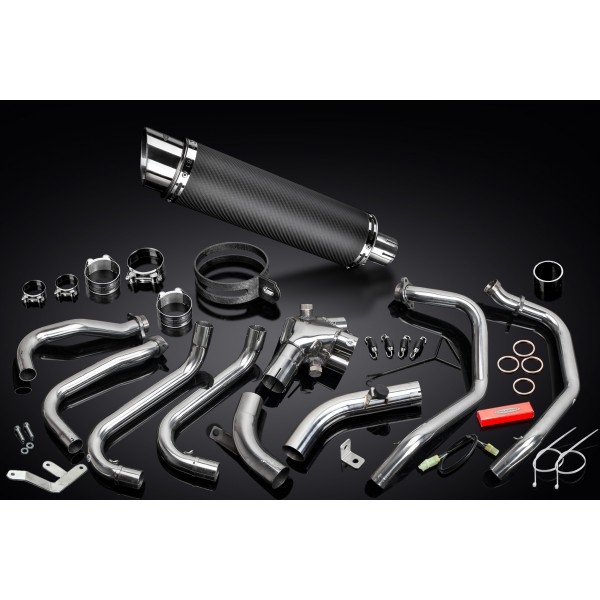 • This set includes - Delkevic down pipes, link pipe, silencer with a removable baffle, strap, clamps, gaskets, stand stop rubber, spring hooks, bracket, and wiring kit.