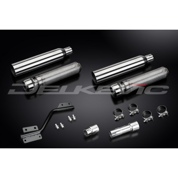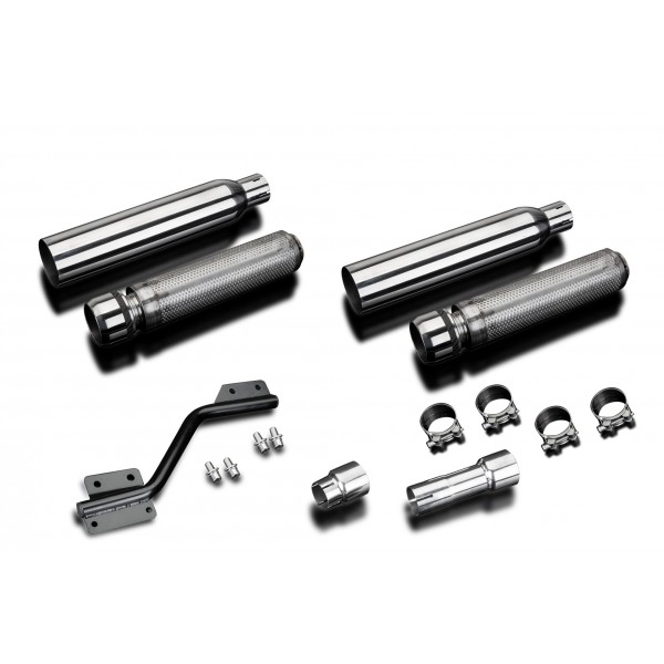 • This set includes - Delkevic silencers with removable baffles, link pipes, bracket, washers, cap screws, and clamps.