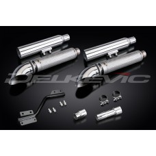 • This set includes - Delkevic silencers with removable baffles, link pipes, bracket, washers, cap screws, and clamps.