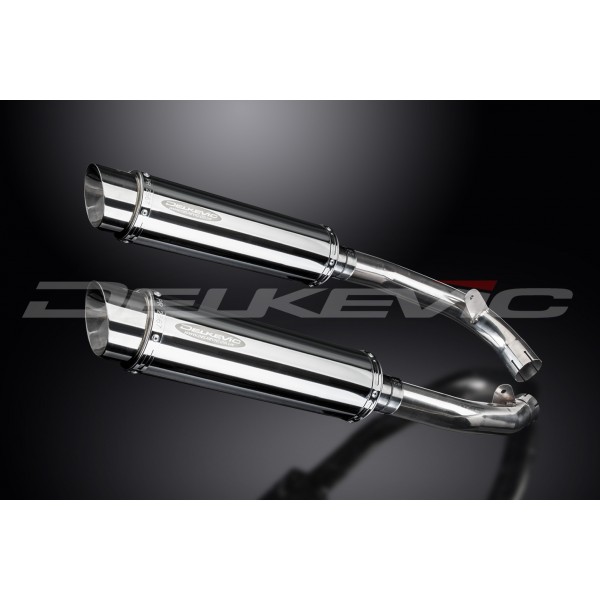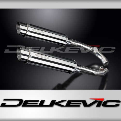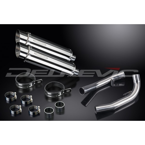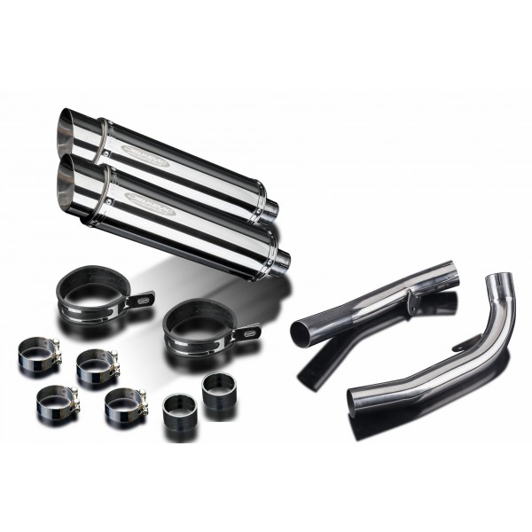 • This set includes - Delkevic silencers with removable baffles, link pipes, silencer straps, gaskets, and clamps.