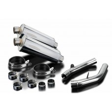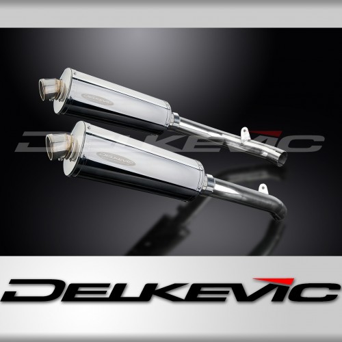 • This set includes - Delkevic silencers with removable baffles, link pipes, silencer straps, gaskets, and clamps.