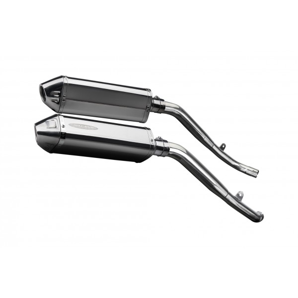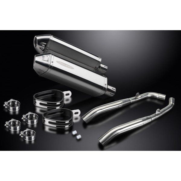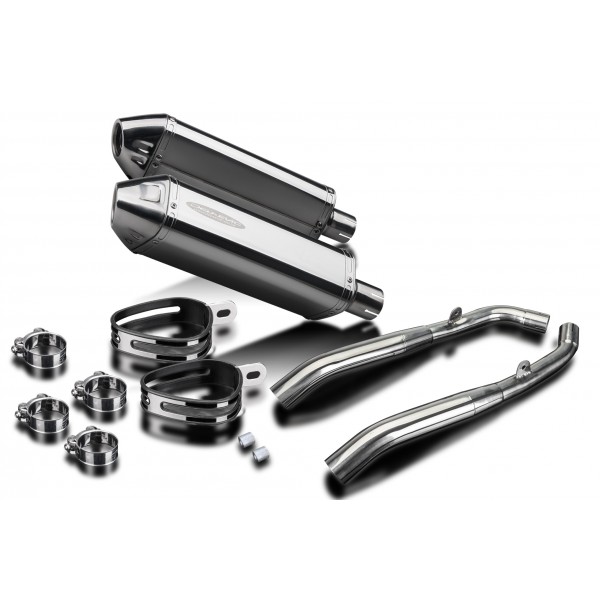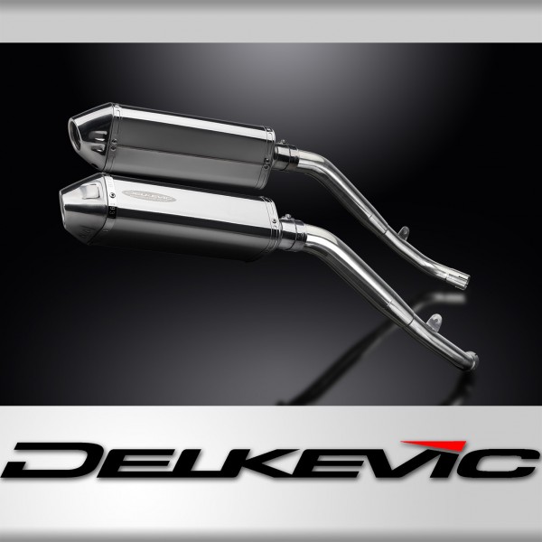 • This set includes - Delkevic silencers with a removable baffle, link pipes, silencer straps, spacers, and clamps.