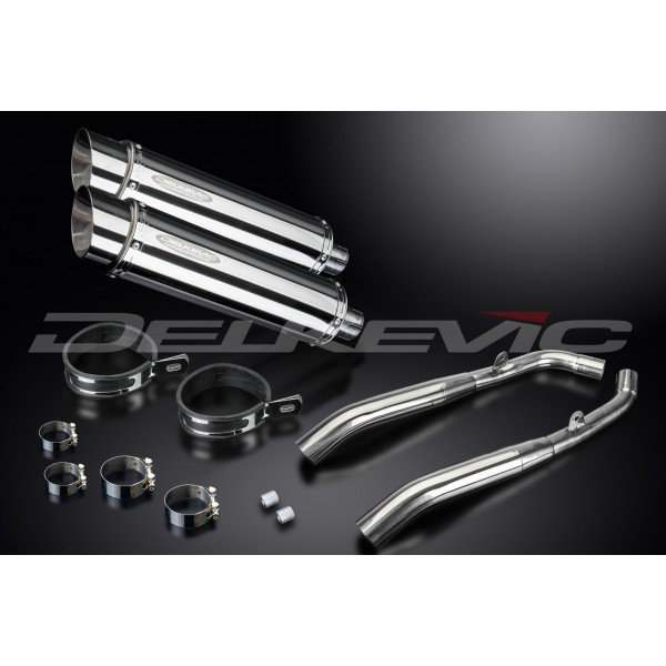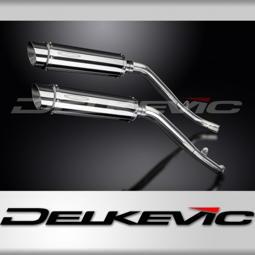 • This set includes - Delkevic silencers with a removable baffle, link pipes, silencer straps, spacers, and clamps.