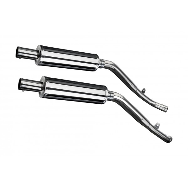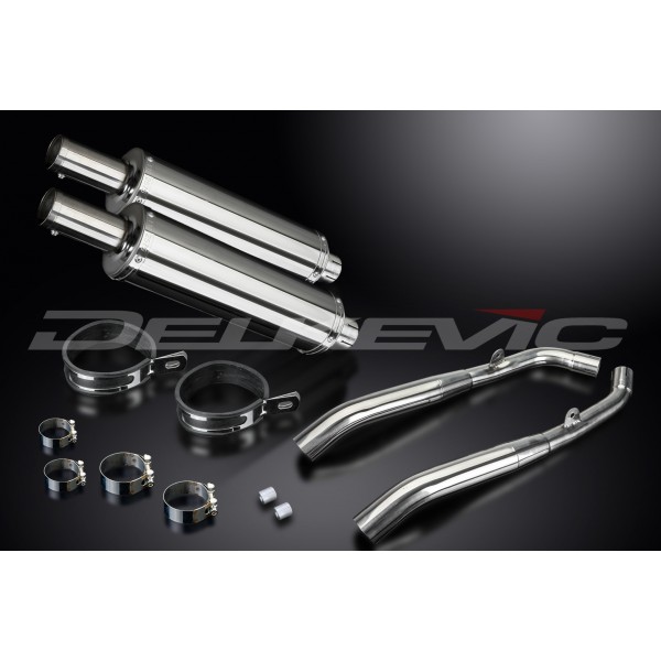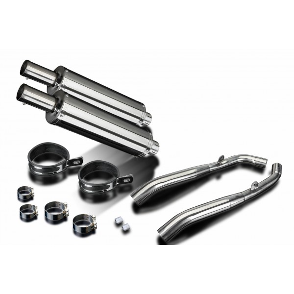 • This set includes - Delkevic silencers with a removable baffle, link pipes, silencer straps, spacers, and clamps.