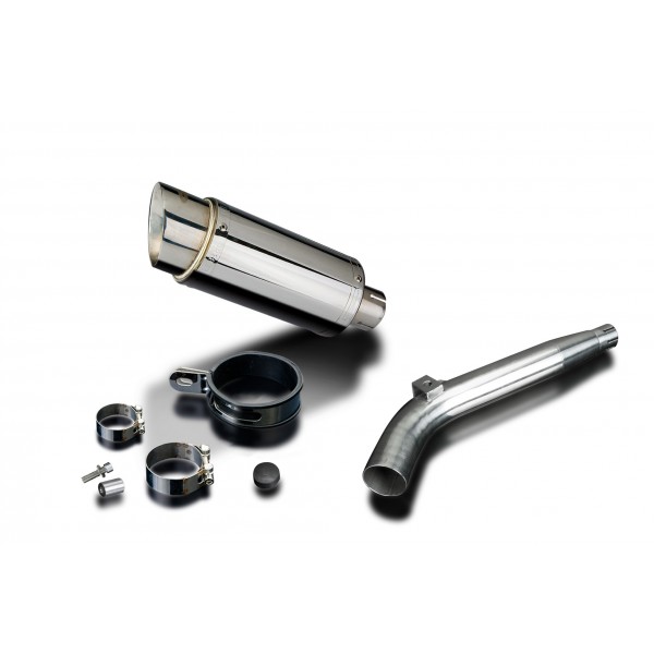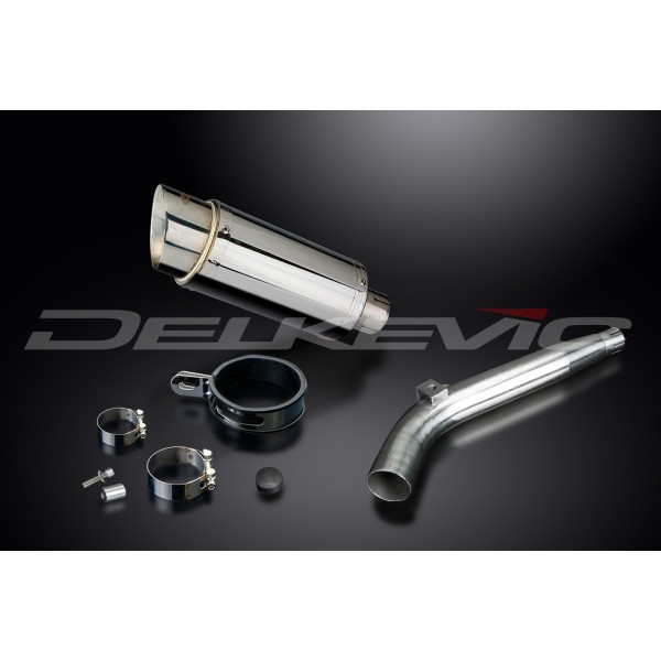 • This set includes - Delkevic silencer with a removable baffle, link pipe, strap, and clamps.