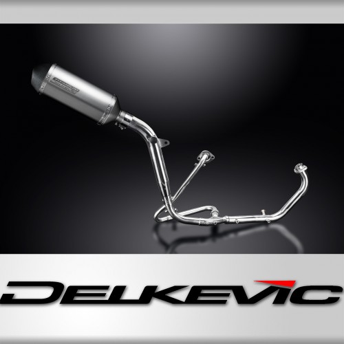 • This set includes - Delkevic down pipes, link pipe, silencer with removable baffle, strap, gasket, and clamps.