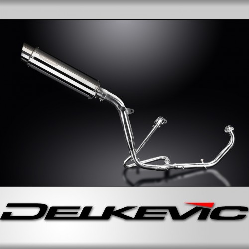 • This set includes - Delkevic down pipes, link pipe, silencer with removable baffle, strap, gasket, and clamps.