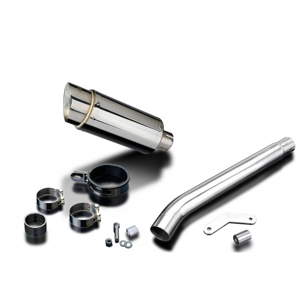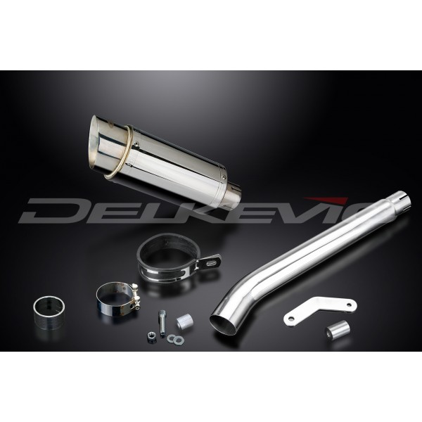 • This set includes - Delkevic silencer with a removable baffle, link pipe, silencer strap, bracket, clamps, gasket, and fixings.