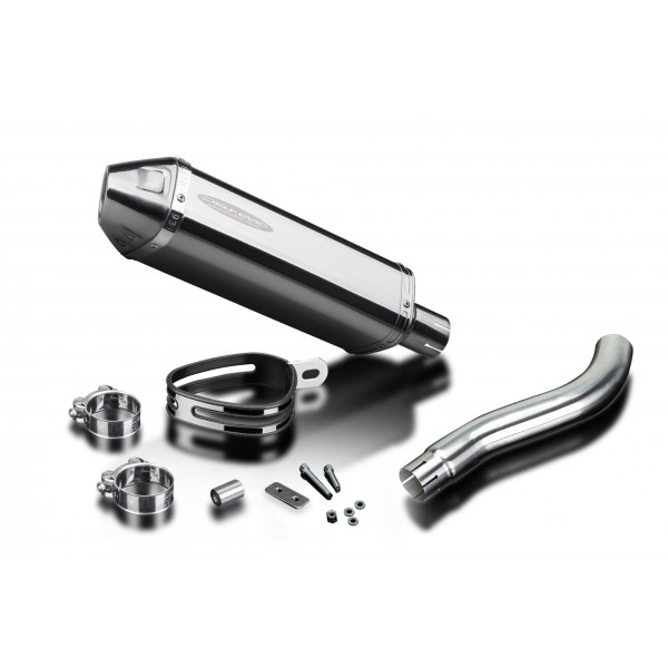 • This set includes - Delkevic silencer with a removable baffle, link pipe, strap, clamps, spacer, drop bracket, cap screws, nyloc nut, and washers.