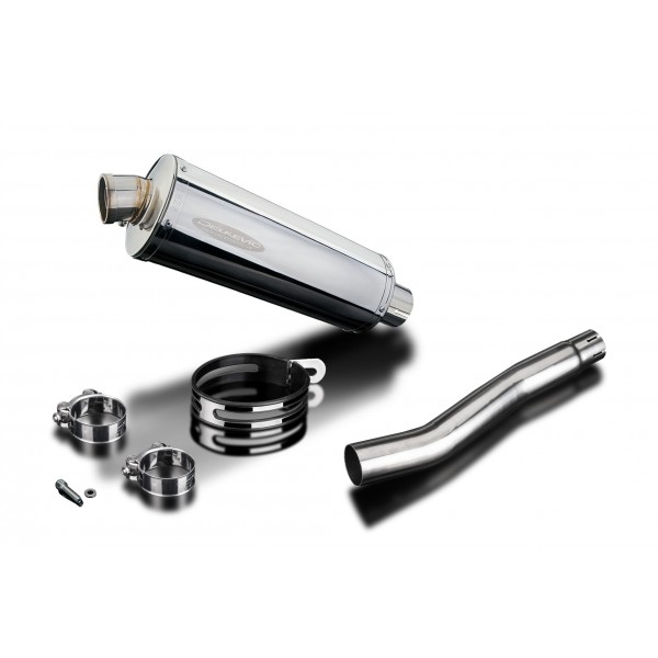 • This set includes - Delkevic silencer with a removable baffle, link pipe, silencer strap, bracket, clamps, gasket, and fixings.