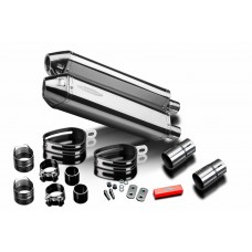 • This set includes - Delkevic silencers with removable baffles, link pipes, straps, screws, brackets, gaskets, spacers, and clamps.