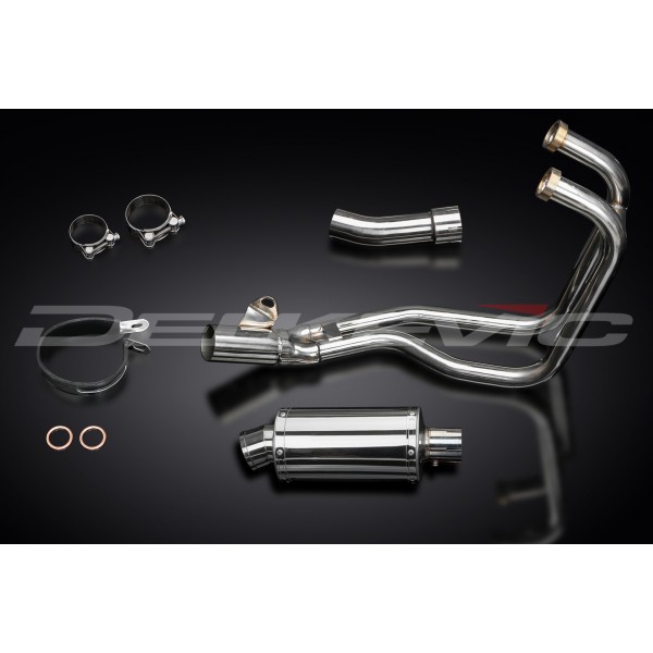 KAWASAKI ER5 1996-07 FULL EXHAUST SYSTEM 225mm STAINLESS OVAL SILENCER