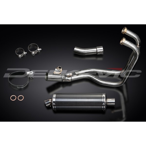 KAWASAKI ER5 1996-07 FULL EXHAUST SYSTEM 350mm CARBON OVAL SILENCER