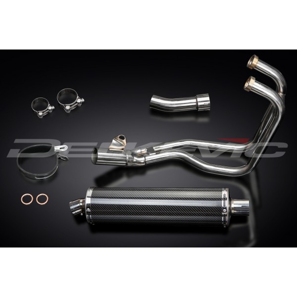 KAWASAKI ER5 1996-07 FULL EXHAUST SYSTEM 450mm CARBON OVAL SILENCER