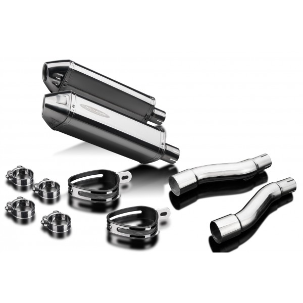 • This set includes - Delkevic silencers with removable baffles, link pipes, clamps, and straps.
