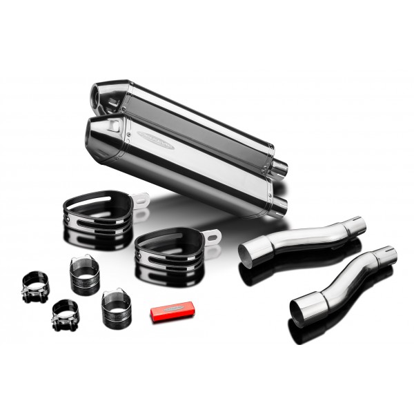 • This set includes - Delkevic silencers with removable baffles, link pipes, clamps, and straps.