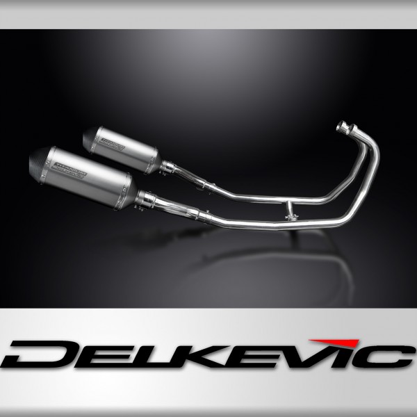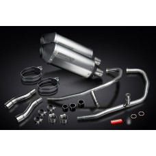 • This set includes - Delkevic down pipes, link pipes, silencers with removable baffles, straps, clamps, and gaskets.