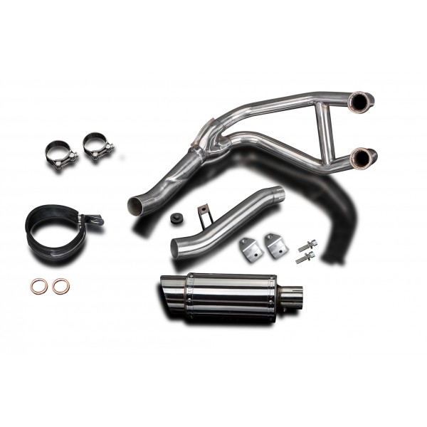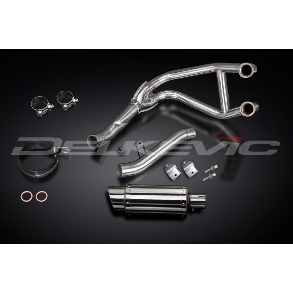 • This set includes - Delkevic down pipes, link pipe, silencer with removable baffles, strap, clamps, gaskets, brackets, stand stop rubber, cap screws, and washers.