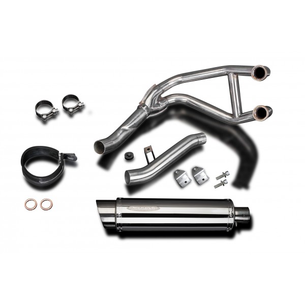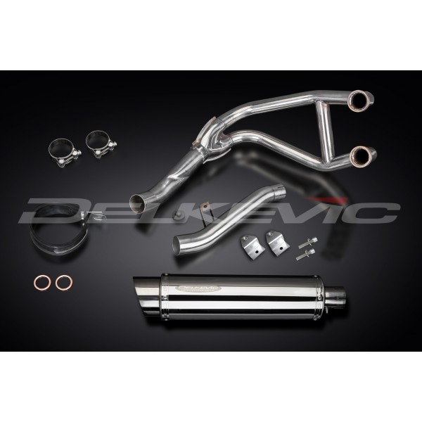 • This set includes - Delkevic down pipes, link pipe, silencer with removable baffles, strap, clamps, gaskets, brackets, stand stop rubber, cap screws, and washers.