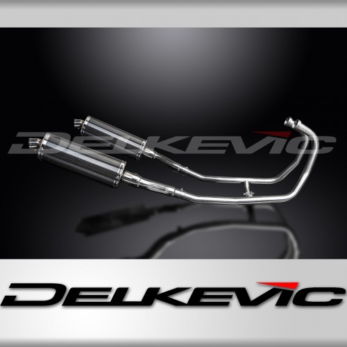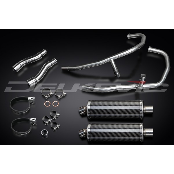 KAWASAKI GPZ500S FULL 2-2 EXHAUST SYSTEM 350mm CARBON OVAL BSAU SILENCERS